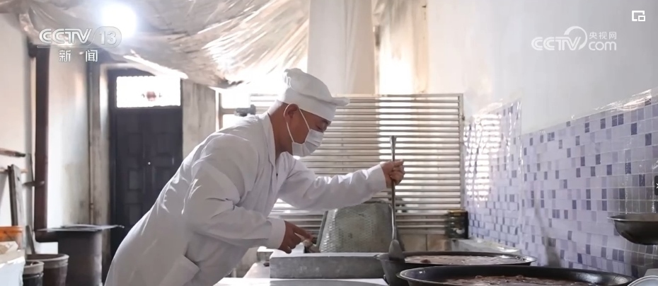 在山西芮城,制作芝麻糖已有上百年的歷史。在一家芝麻糖加工車間,早晨7點(diǎn)多,制糖師傅們就開始制作糖稀,熬制好的糖稀在鍋里不斷翻滾,隨后的工序更加關(guān)鍵,拉糖、切糖要一氣呵成,芝麻糖才能色香味俱佳。
