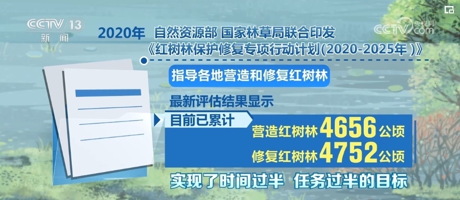 2020年,自然資源部、國家林草局聯(lián)合印發(fā)《紅樹林保護修復專項行動計劃(2020—2025年)》,指導各地營造和修復紅樹林。最新評估結(jié)果顯示,目前,已累計營造紅樹林4656公頃,修復紅樹林4752公頃,實現(xiàn)了時間過半、任務(wù)過半的目標。