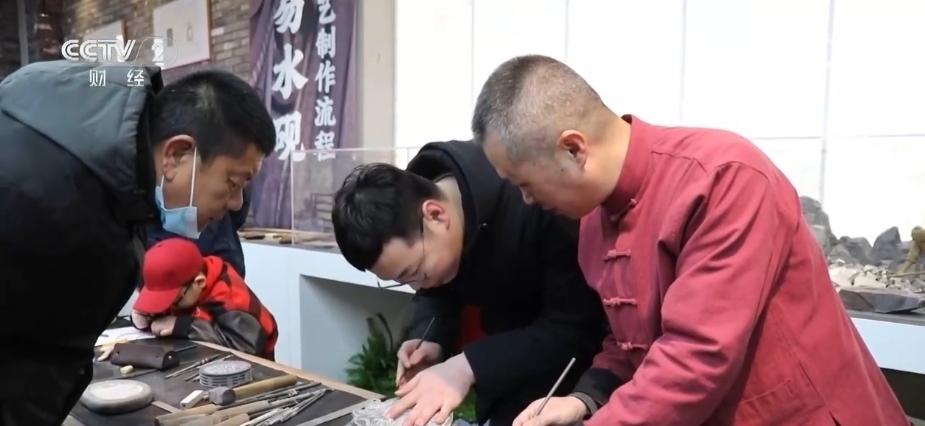 在河北保定,當(dāng)?shù)嘏e辦了“非遺過大年”活動。有300余年歷史的非遺表演——“擺字龍燈”首先亮相。表演者舞動著金色的長龍,擺出“龍年大吉”等字樣。除了表演,還有非遺技藝“易水硯制作”“結(jié)繩技藝”等也吸引了群眾和游客們沉浸式體驗。