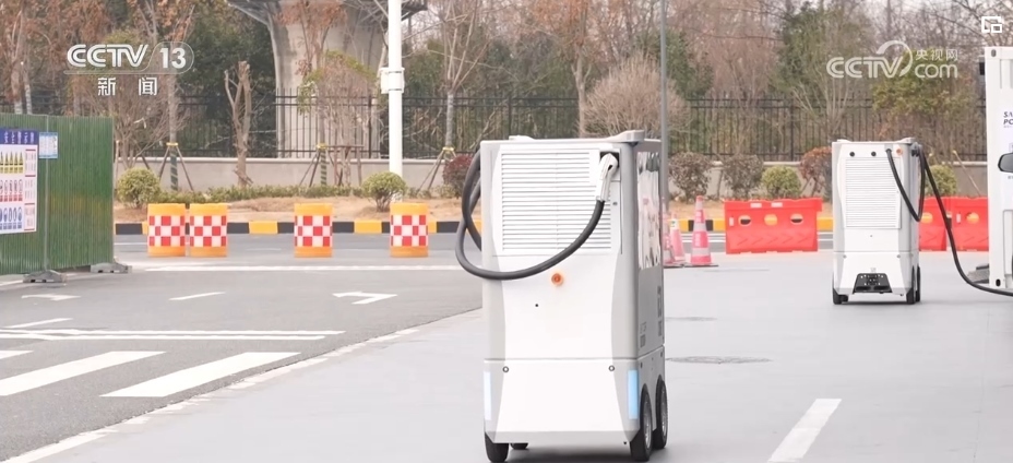 像這樣的移動(dòng)充電機(jī)器人,嘉興服務(wù)區(qū)設(shè)置了12個(gè)。為了應(yīng)對(duì)春運(yùn)期間的車流量,服務(wù)區(qū)的車位還從原來的300多個(gè)增加到了近800個(gè),充電槍從原來的18個(gè)增加到了68個(gè)。
