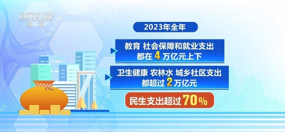 那么,2023年超過27萬億元的錢都花到了哪些方面呢?根據(jù)最新公布的數(shù)據(jù),去年全年,教育、社會保障和就業(yè)支出都在4萬億元上下,衛(wèi)生健康、農(nóng)林水、城鄉(xiāng)社區(qū)支出都超過了2萬億元,粗粗算一下將近15萬億元,也就是說,民生支出超過了70%。