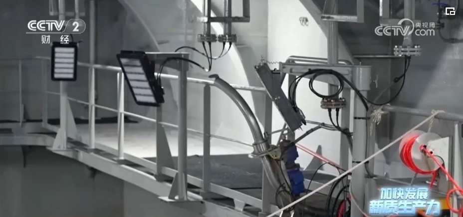 依靠首創(chuàng)的“船載艙養(yǎng)”模式,國信1號養(yǎng)殖工船,每年能實現(xiàn)3700噸高品質(zhì)魚類和650噸優(yōu)質(zhì)蛋白的供給。到了收獲的時候,艙內(nèi)的大黃魚將通過吸魚泵和傳送帶直接轉(zhuǎn)運至休眠池,在那里進(jìn)行快速降溫休眠鎖鮮。