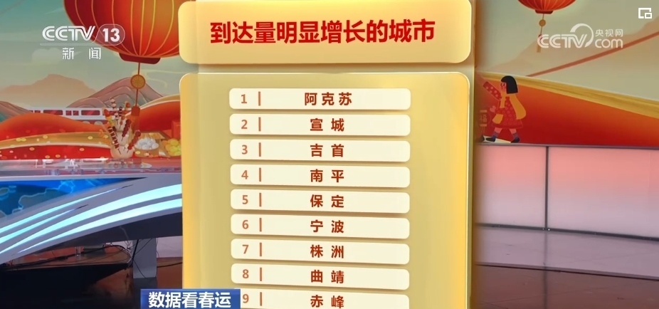 在2月7日的春運熱力圖上,最熱門的城市變化不大,根據(jù)12306的票務(wù)數(shù)據(jù),預(yù)計2月7日將有48個城市的到達人次出現(xiàn)明顯增長。