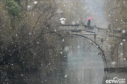 長沙,一夜凍雨后,街頭梅花結(jié)冰。
