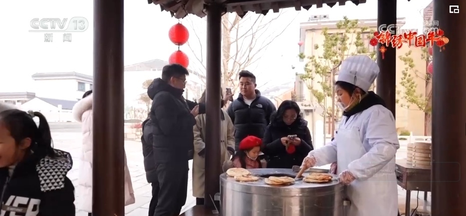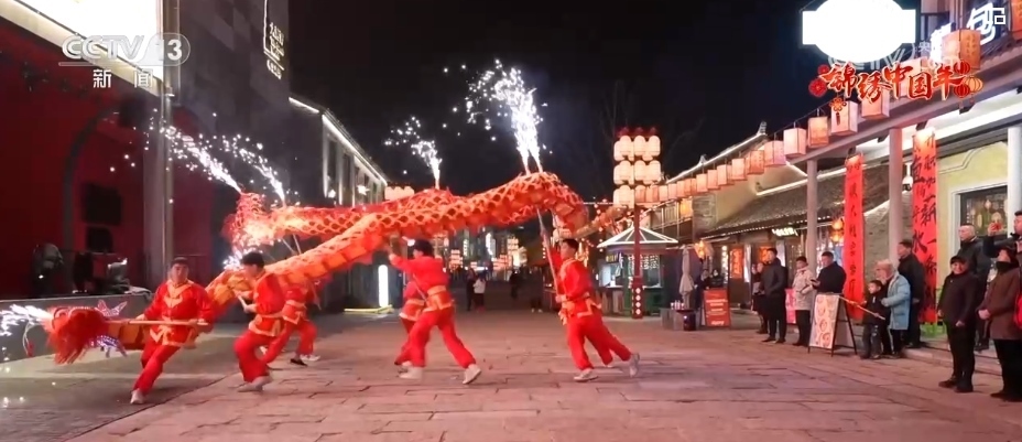老式燒餅色澤金黃、香酥可口、風味獨特,裹滿糖衣的糖葫蘆一口一個香甜美味,還有非遺美食合成昌的糖麻花,傳統(tǒng)美食琳瑯滿目,年味兒十足,吸引了不少市民游客進店品嘗購買。剛入夜,龍燈點亮珠溪古鎮(zhèn),光影畫卷流光溢彩,煙花舞龍震撼登場,情景劇精彩上演。