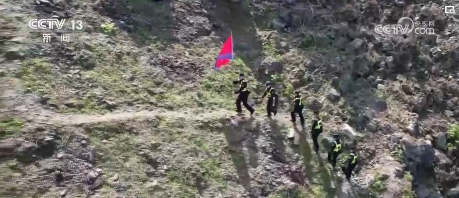 巡邏路有一半是蜿蜒崎嶇的山路,另一半則是陡峭的山坡和聳入云霄的直梯,巡邏一趟至少需要4個(gè)小時(shí)。在588號(hào)界碑旁,民警們舉行了升旗儀式,看著五星紅旗在南疆“云梯”上冉冉升起,每個(gè)人的臉上寫滿自豪。