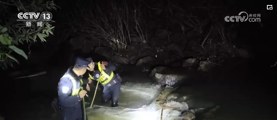 在廣西崇左的中越邊境線上,憑祥邊境管理大隊(duì)三色橋抵邊警務(wù)室執(zhí)勤民警在深夜里巡邊,檢查邊境防護(hù)設(shè)施,遇到湍急的溪流,挽起褲腳涉水而過。