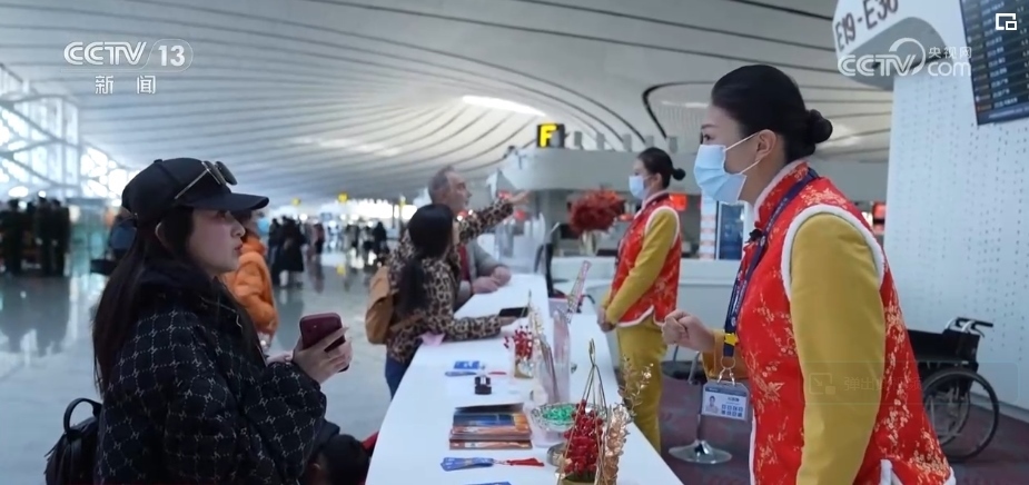 2月9日,超過13萬名旅客通過北京大興機(jī)場(chǎng)乘飛機(jī)旅行或回家過年。為了給乘客的旅途增一絲暖意,添一分平安,大興機(jī)場(chǎng)年輕的服務(wù)大使們,在崗位上默默奉獻(xiàn)著。