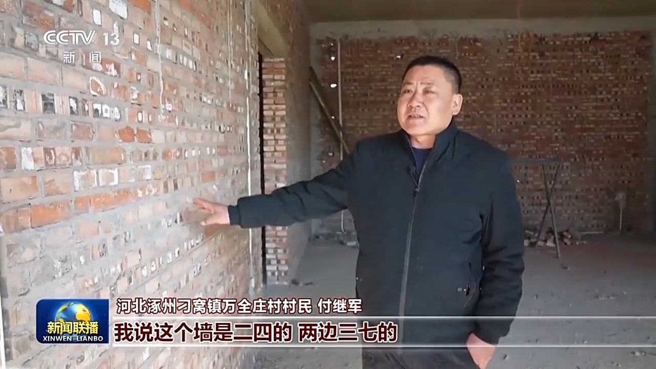 河北涿州刁窩鎮(zhèn)萬(wàn)全莊村村民 付繼軍:去年,總書記來那會(huì)兒這個(gè)房子剛壘墻壘到這個(gè)位置,總書記還這么摸了摸,說這活兒干得挺好,問了問我這是三七墻呀二四墻呀,我說這個(gè)墻是二四的,兩邊三七的,看著總書記特別溫暖,那會(huì)兒真是掉眼淚。準(zhǔn)備抓緊裝修,盡快搬進(jìn)來,村里邊現(xiàn)在大家也都干勁挺大的,盡最大努力,把日子過好。