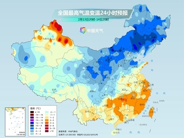 具體來看,14日隨著冷空氣主體抵達(dá),北方大部氣溫將出現(xiàn)明顯下滑,內(nèi)蒙古東部、吉林等地降溫10℃以上,15日,江淮、江南等地也會迎來10℃以上的“斷崖”式降溫。
