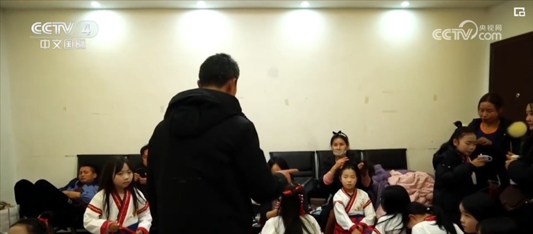 學(xué)生們要放寒假了,郭云兵的寒假計(jì)劃已經(jīng)排的滿(mǎn)滿(mǎn)當(dāng)當(dāng),其中一項(xiàng)就是帶領(lǐng)朗誦團(tuán)參加當(dāng)?shù)厣賰捍和淼匿浿啤TS多新加入的成員還是第一次站上舞臺(tái),上場(chǎng)前郭云兵給他們加油打氣。