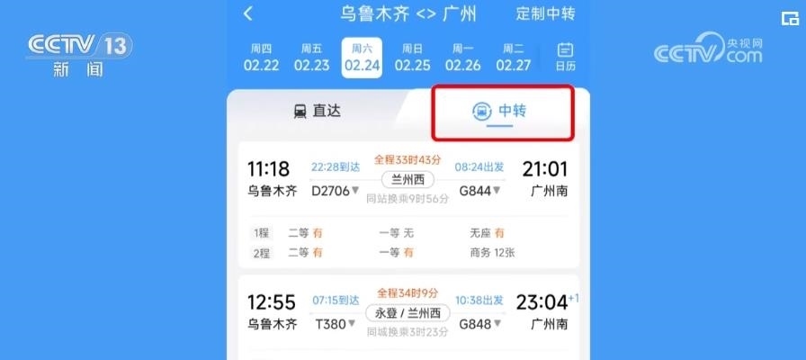 旅客打開(kāi)鐵路12306App,查詢車票時(shí),頁(yè)面上部左側(cè)是有“直達(dá)”字樣,右邊就是“中轉(zhuǎn)”字樣,點(diǎn)擊“中轉(zhuǎn)”按鈕就跳到了中轉(zhuǎn)換乘的頁(yè)面了。旅客可以根據(jù)系統(tǒng)顯示的中轉(zhuǎn)換乘方案選擇適合自己的出行線路。