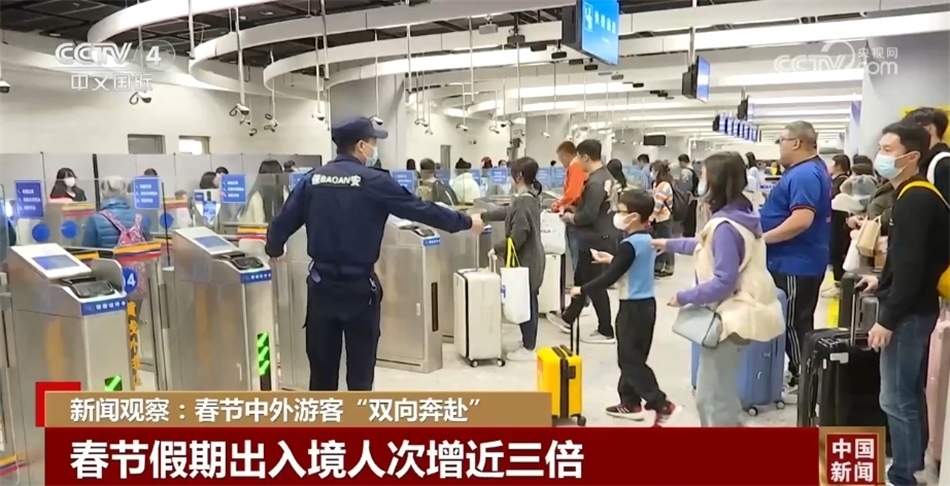 春節(jié)前,中國對多個國家單方面免簽證,今年春節(jié)出境游、入境游訂單均超過2019年同期。其中,出境游創(chuàng)下近4年峰值,預(yù)訂量同比增長近10倍。全國邊檢機關(guān)共驗放中外出入境人員1351.7萬人次,較2023年春節(jié)同期增長2.8倍,恢復(fù)至2019年春節(jié)同期的近九成。