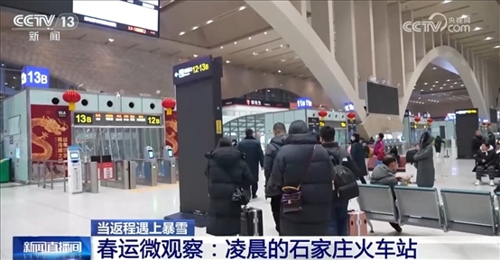 在石家莊火車(chē)站,記者看到,雖然已經(jīng)凌晨一點(diǎn)多了,由于列車(chē)晚點(diǎn),車(chē)站里仍然有不少旅客,車(chē)站方面也增加了人力,做好旅客疏導(dǎo)和服務(wù)保障工作。
