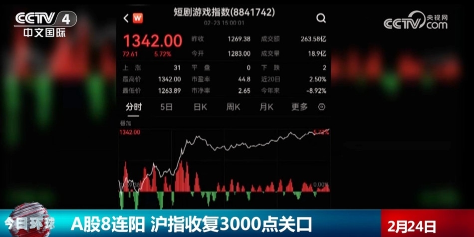 A股8連陽(yáng) 滬指收復(fù)3000點(diǎn)關(guān)口