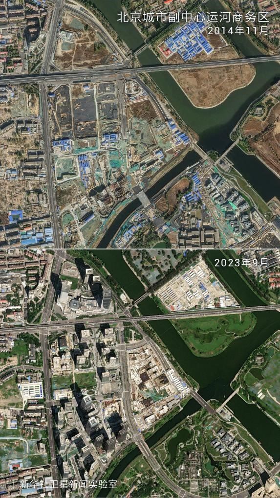 記者借助萬米高空拍攝的衛(wèi)星圖片,展現(xiàn)了“千年之城”發(fā)展的十年蝶變?!?/p>