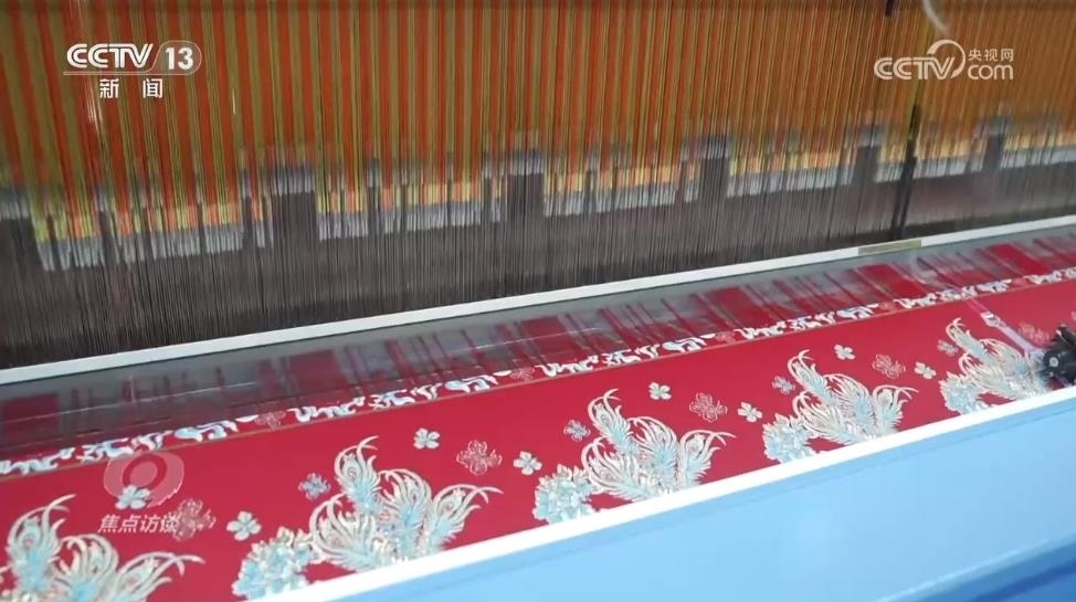 張明強(qiáng):“大提花的機(jī)器原來可以做窗簾,但同時也可以做馬面裙面料,也可以做服裝面料,就是同一臺機(jī)器可以做,所以我們這次轉(zhuǎn)型是不需要買機(jī)器的,它的成本就會比較低了?!?/p>