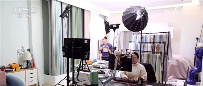 在當(dāng)?shù)亓硪患移髽I(yè)的直播間內(nèi),主播們正在嫻熟地介紹公司的窗簾產(chǎn)品。近年來(lái),公司發(fā)力網(wǎng)絡(luò)直播業(yè)務(wù),線上訂單逐年增長(zhǎng),目前已經(jīng)占到了公司整體銷售額約65%。