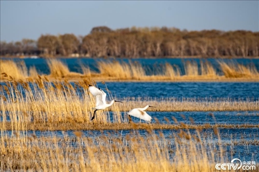 黑龍江齊齊哈爾,天氣回暖,一對白琵鷺來到扎龍自然保護(hù)區(qū)克欽湖濕地筑巢安家。