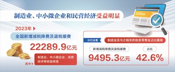 超2.2萬億元——這是2023年全國新增減稅降費及退稅緩費的總規(guī)模,其中超七成“落”于民營經(jīng)濟,稅費紅利精準(zhǔn)“落袋”,助企減負(fù)增活力。