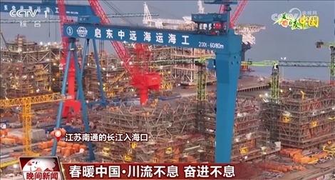 在江蘇南通的長江入???,一個個造型各異的“巨無霸”讓人震撼。眼前的這艘海上浮式生產(chǎn)儲油輪已經(jīng)進(jìn)入最后的模塊吊裝施工階段。與此同時,自升式風(fēng)電安裝船、全球最大集裝箱船等重點高端產(chǎn)品不斷取得突破。長江入??谑墙K點也是起點,所謂突破就是將終點當(dāng)成起點,不停出發(fā)。
