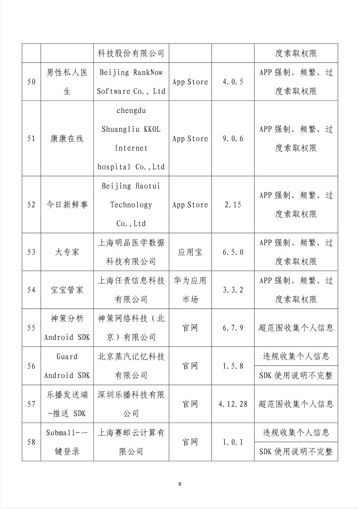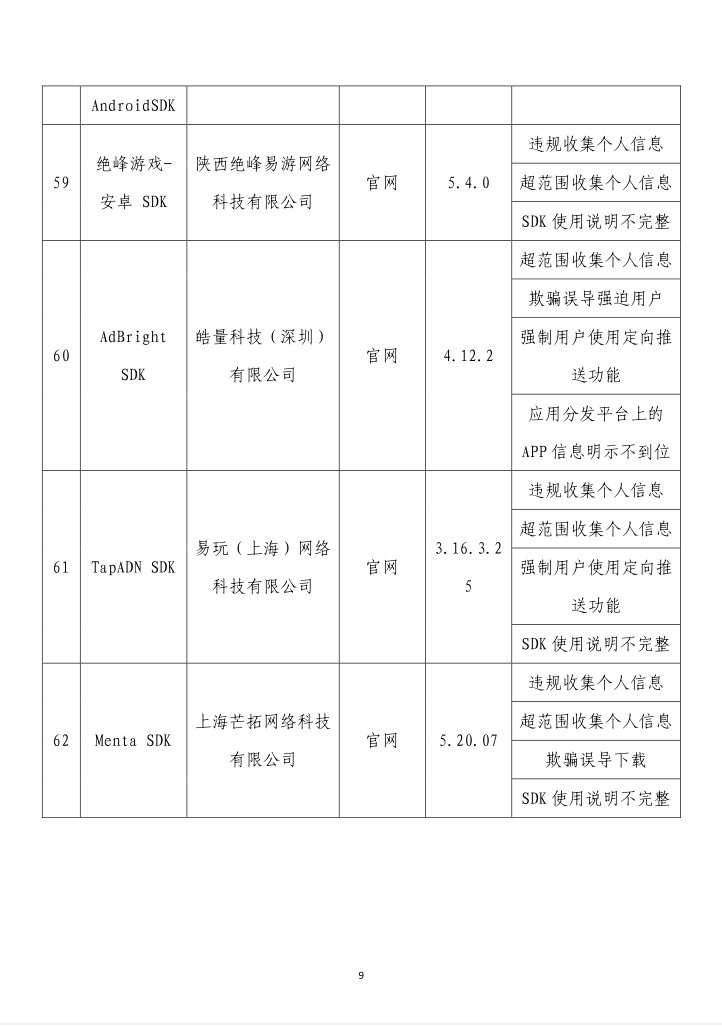 工業(yè)和信息化部高度重視用戶權(quán)益保護工作,依據(jù)《個人信息保護法》《網(wǎng)絡安全法》《電信條例》《電信和互聯(lián)網(wǎng)用戶個人信息保護規(guī)定》等法律法規(guī),持續(xù)整治APP侵害用戶權(quán)益的違規(guī)行為。近期,工業(yè)和信息化部組織第三方檢測機構(gòu)對用戶反映突出的“搖一搖”亂跳轉(zhuǎn)、信息窗口“關(guān)不掉”以及違規(guī)收集使用個人信息等問題進行檢查,共發(fā)現(xiàn)62款APP及SDK存在侵害用戶權(quán)益行為,現(xiàn)予以通報。