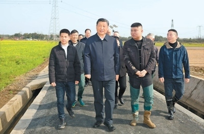 湖南是全國(guó)13個(gè)糧食主產(chǎn)省之一,水稻播種面積、總產(chǎn)量均居全國(guó)第一。當(dāng)天下午,習(xí)近平來(lái)到常德市鼎城區(qū)謝家鋪鎮(zhèn)港中坪村,走進(jìn)當(dāng)?shù)丶Z食生產(chǎn)萬(wàn)畝綜合示范片區(qū),察看秧苗培育和春耕備耕進(jìn)展,聽(tīng)取高質(zhì)量推進(jìn)農(nóng)業(yè)現(xiàn)代化情況介紹,并同種糧大戶、農(nóng)技人員、基層干部一筆一筆算投入產(chǎn)出賬。習(xí)近平強(qiáng)調(diào),我國(guó)有14億多人口,糧食安全必須靠我們自己保證,中國(guó)人的飯碗應(yīng)該主要裝中國(guó)糧。要建設(shè)好高標(biāo)準(zhǔn)農(nóng)田,推行適度規(guī)模經(jīng)營(yíng),加強(qiáng)政策支持和示范引領(lǐng),加大良種、良機(jī)、良法推廣力度,在精耕細(xì)作上下功夫,進(jìn)一步把糧食單產(chǎn)和品質(zhì)提上去,讓種糧也能夠致富,進(jìn)而吸引更多農(nóng)戶參與發(fā)展現(xiàn)代化大農(nóng)業(yè),真正把中國(guó)特色農(nóng)業(yè)現(xiàn)代化之路走穩(wěn)走扎實(shí)。