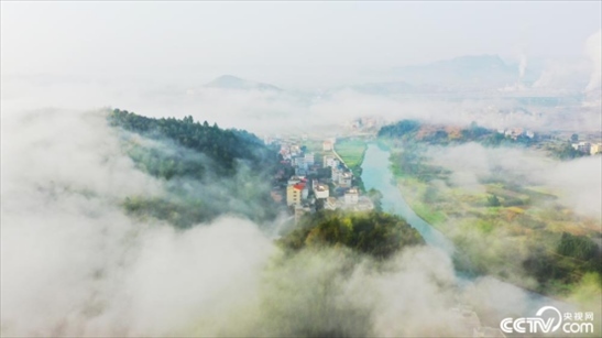 2024年3月20日,湖南永州,新田縣現平流霧景觀,如夢如幻。