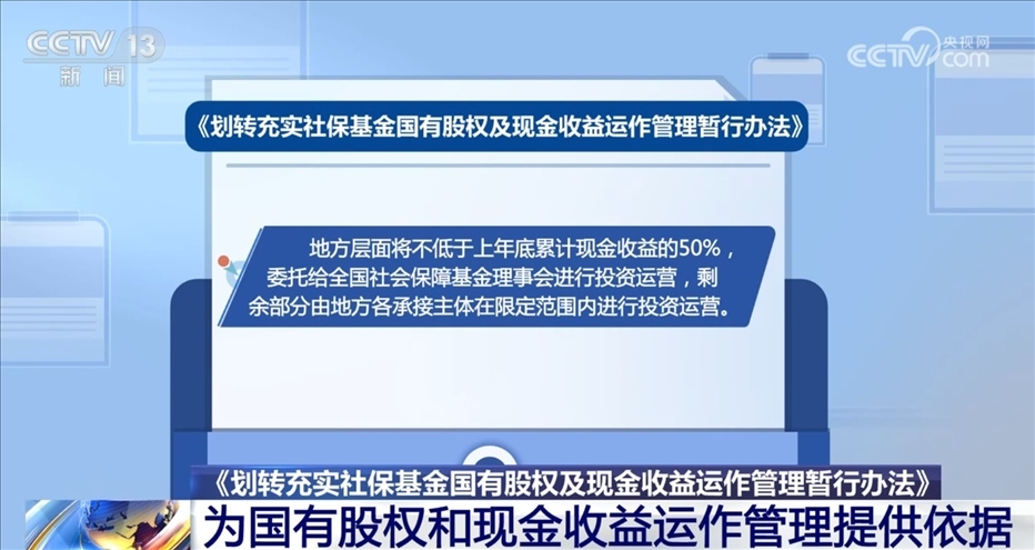 央視網(wǎng)消息:近日,財(cái)政部、人力資源社會(huì)保障部、國(guó)務(wù)院國(guó)資委三部門(mén)聯(lián)合印發(fā)了《劃轉(zhuǎn)充實(shí)社保基金國(guó)有股權(quán)及現(xiàn)金收益運(yùn)作管理暫行辦法》(以下簡(jiǎn)稱《辦法》)?!掇k法》為承接主體開(kāi)展國(guó)有股權(quán)和現(xiàn)金收益運(yùn)作管理提供了依據(jù)。