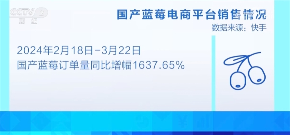 隨著短視頻打卡、直播帶貨、線上拼團(tuán)等模式的興起,通過電商平臺購買藍(lán)莓的消費(fèi)者也出現(xiàn)爆發(fā)式增長。某電商平臺數(shù)據(jù)顯示,今年春節(jié)以來(2月18—3月22日),國產(chǎn)藍(lán)莓的訂單量同比增幅1637.65%。