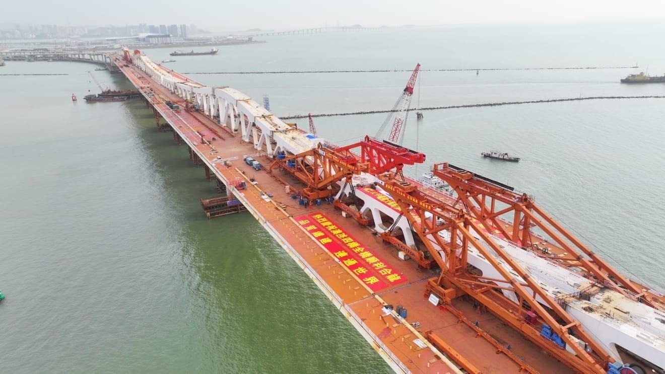 澳氹第四條跨海大橋連接澳門新城填海A區(qū)、填海E區(qū)以及港珠澳大橋人工島口岸區(qū),是構(gòu)建澳門城市交通體系的關(guān)鍵節(jié)點。該大橋于3月12日順利實現(xiàn)全橋合龍,由主體結(jié)構(gòu)工程全面邁入橋梁附屬結(jié)構(gòu)工程。(總臺記者 ?劉冰清)