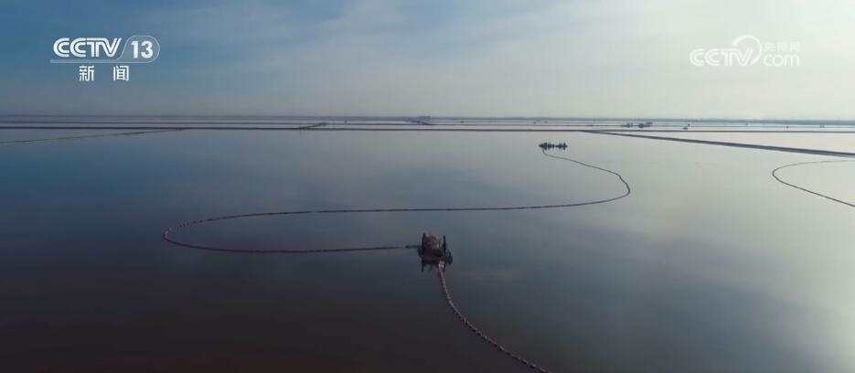 從空中俯瞰,一望無垠的鹽池里碧波蕩漾,一艘艘采鹽船在碧綠的湖面上緩緩游動作業(yè)。在當?shù)?,含有各種鹽類礦物質(zhì)的水被稱作“鹵水”?!胞u水”如何轉(zhuǎn)變成鉀肥?第一步便是采鹽。