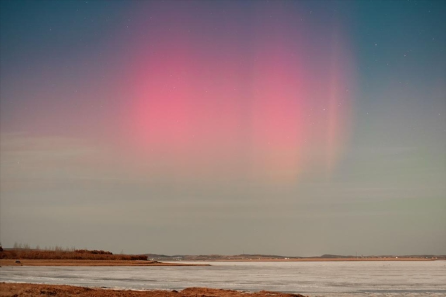 25日,受地磁暴活動影響,黑龍江省齊齊哈爾訥河市出現“腮紅”式極光,場景震撼。目前,地磁暴活動已開始逐漸減弱。