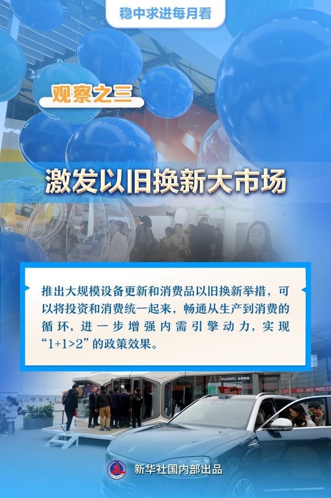 【記者觀察】推出大規(guī)模設(shè)備更新和消費(fèi)品以舊換新舉措,可以將投資和消費(fèi)統(tǒng)一起來,暢通從生產(chǎn)到消費(fèi)的循環(huán),進(jìn)一步增強(qiáng)內(nèi)需引擎動(dòng)力,實(shí)現(xiàn)“1+1>2”的政策效果。