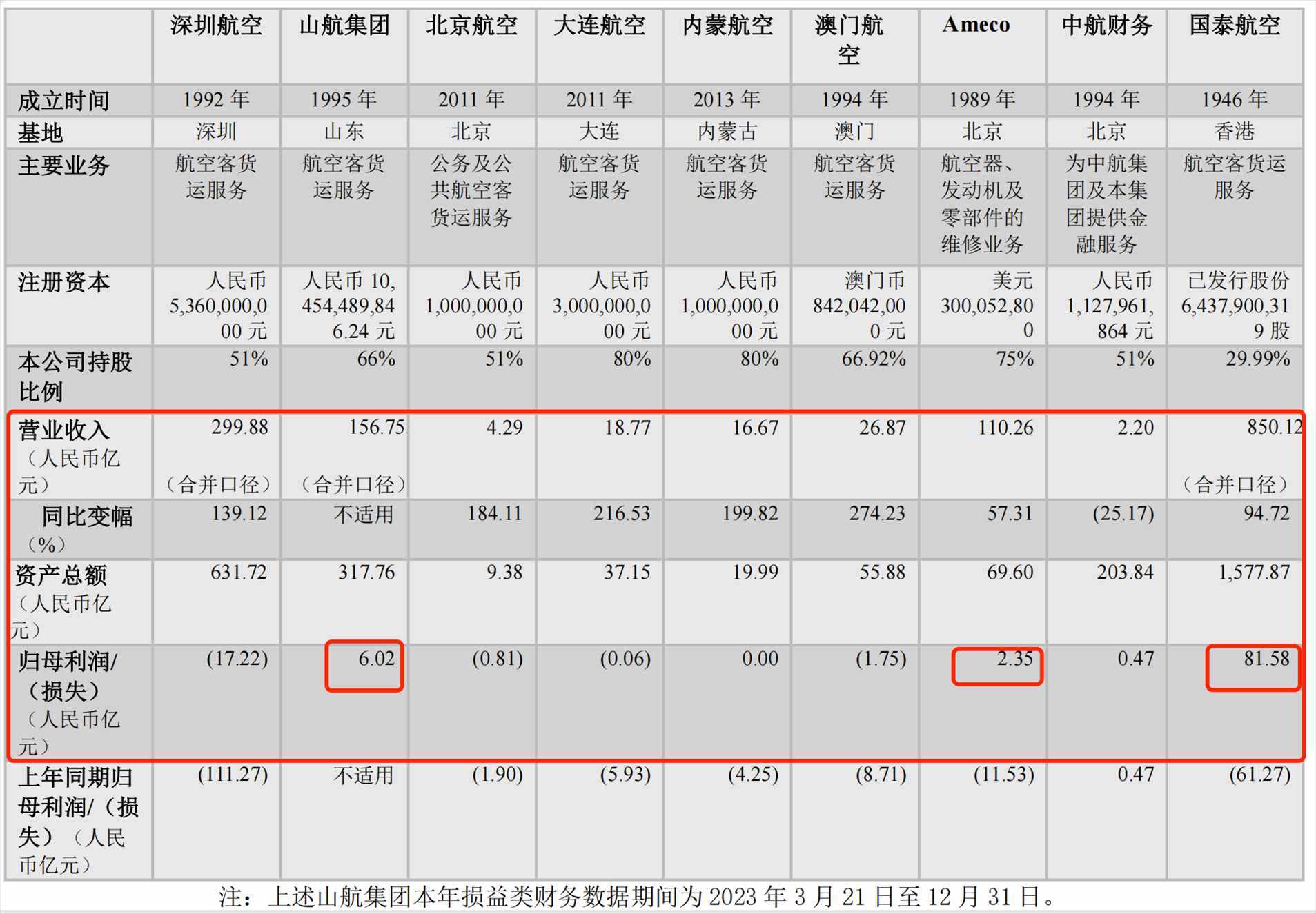具體來看國航,分別控股和持股的山航集團(tuán)與國泰航空實現(xiàn)盈利。山航集團(tuán)去年營收156.75億元,歸母凈利潤為6.02億元;國泰航空去年營收850.12億元,同比增超九成,歸母凈利潤為81.58億元,上年同期為虧損61.27億元;內(nèi)蒙古航司實現(xiàn)營收16.67億元,同比增近2倍,歸母凈利潤為0元,上年同期為虧損4.25億元。航空器維修公司Ameco去年營收110.26億元,同比增57.31%,實現(xiàn)歸母凈利潤為2.35億元,去年同期為虧損11.53億元。
