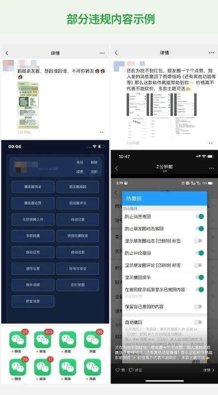 3月26日,微信安全中心發(fā)布《針對在微信使用“外掛”行為的打擊公告》,《公告》指出,根據(jù)《微信個人賬號使用規(guī)范》規(guī)定,微信明確禁止使用各類“外掛”。但近期發(fā)現(xiàn),有部分用戶存在多次違規(guī)使用“外掛”軟件,或在朋友圈發(fā)布“外掛”售賣信息的行為。對此,微信安全團(tuán)隊(duì)進(jìn)行了專項(xiàng)清理,并將持續(xù)加大清理力度。