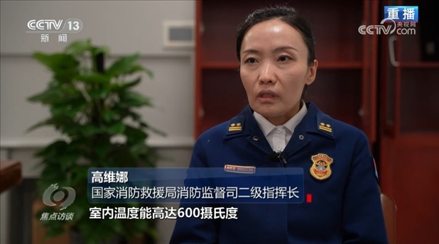 國家消防救援局消防監(jiān)督司二級指揮長高維娜:“30秒鐘就能達(dá)到燃燒狀態(tài),3分鐘火焰中心部位的溫度能達(dá)到1200攝氏度。如果是在室內(nèi),室內(nèi)溫度能高達(dá)600攝氏度,會產(chǎn)生大量有毒煙氣。目前,我們國家沒有專門針對電動自行車火災(zāi)撲救的滅火藥劑?!?/p>