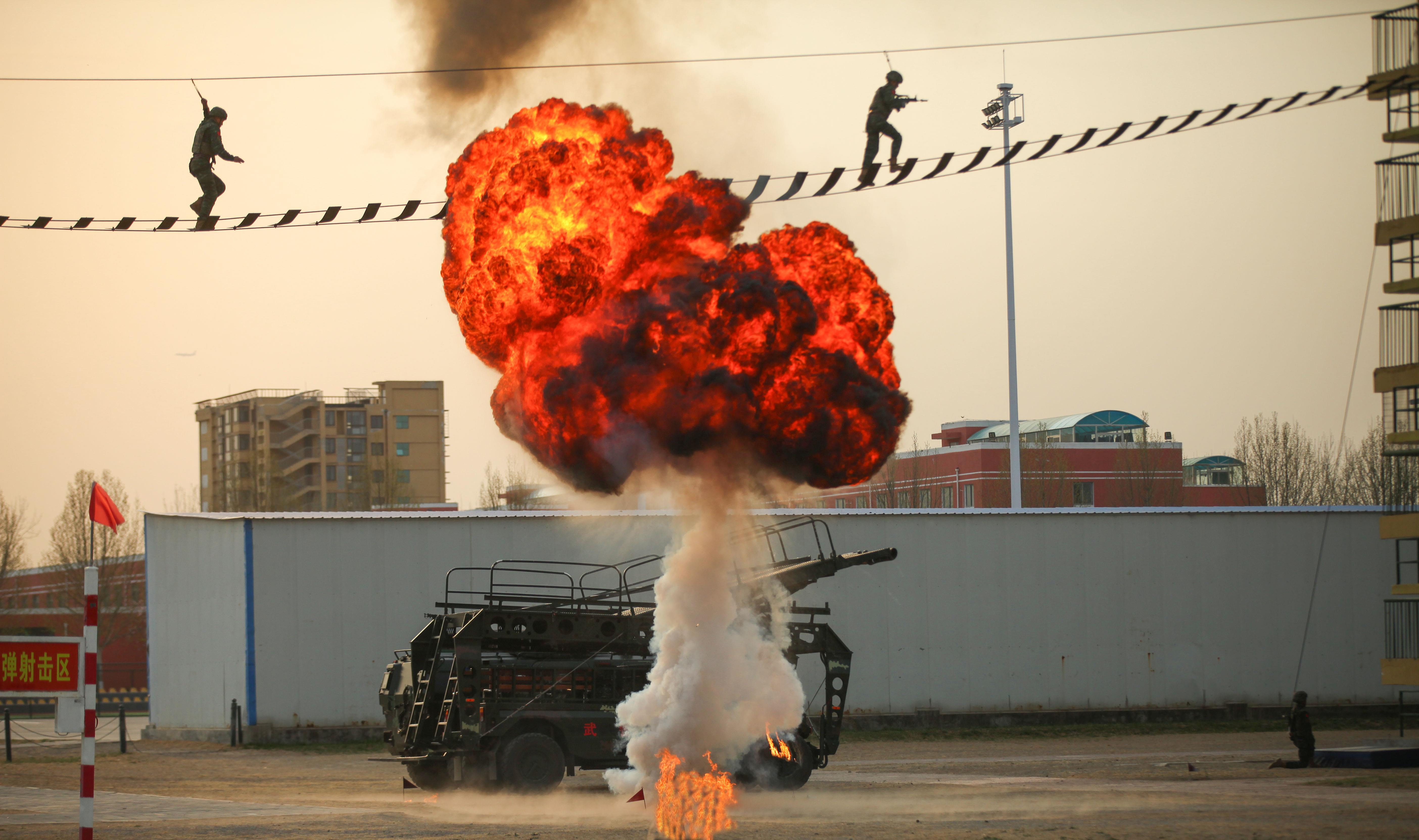 2014年4月9日,習(xí)近平主席來(lái)到中國(guó)人民武裝警察部隊(duì)特種警察學(xué)院視察。反恐課目訓(xùn)練演示,特戰(zhàn)隊(duì)員匕首格斗術(shù)、摔擒制敵術(shù)、極限搏擊和散打?qū)崙?zhàn)對(duì)抗訓(xùn)練……習(xí)主席認(rèn)真觀看。