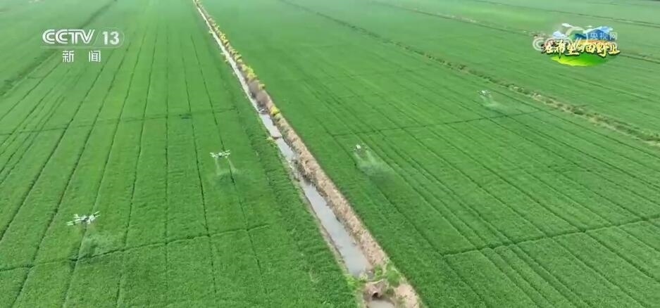 在江蘇淮安,470多萬畝小麥進入破口抽穗期。在淮安市盱眙縣的三河農(nóng)場里,無人機和植保機分別在空中和地面給麥田施肥、除蟲。今年,當(dāng)?shù)卮罅ν七M數(shù)字農(nóng)業(yè)建設(shè),建立了智慧農(nóng)業(yè)平臺,農(nóng)業(yè)部門利用平臺提供的土壤濕度、溫度,作物長勢等數(shù)據(jù),給種植戶提供精準的病蟲害防治和施肥方案,并調(diào)度多種農(nóng)機投入田間管理,讓春管更高效,為農(nóng)業(yè)生產(chǎn)插上“科技翅膀”。