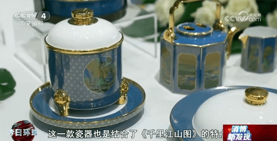 江西省景德鎮(zhèn)市商務(wù)局工作人員章少聰介紹稱:“這一幅畫是北宋王希孟先生創(chuàng)作的,叫作《千里江山圖》。這一款瓷器也是結(jié)合了《千里江山圖》的特點(diǎn),把中國(guó)傳統(tǒng)畫中的山水、花鳥都完全在瓷器上面展現(xiàn)出來?!?/p>