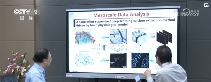 在清華大學(xué)校內(nèi)的一處實(shí)驗(yàn)室里,科研人員正在對(duì)小鼠的大腦神經(jīng)元活動(dòng)進(jìn)行觀測(cè)研究。隨著屏幕上播放的圖片變換,系統(tǒng)中可以實(shí)時(shí)看到小鼠全腦神經(jīng)元做出的不同響應(yīng)。