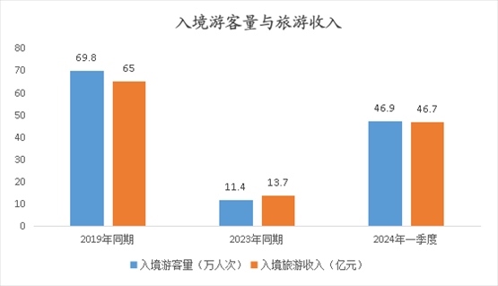 記者今天(4月19日)從北京市文化和旅游局了解到,北京市一季度接待入境游客46.9萬人次,同比增長3.1倍,恢復(fù)到2019年的67.2%;實現(xiàn)旅游外匯收入6.5億美元,同比增長225.8%,恢復(fù)到2019年的67.4%(折合人民幣46.7億元,增長240.0%,恢復(fù)到2019年的71.9%)。