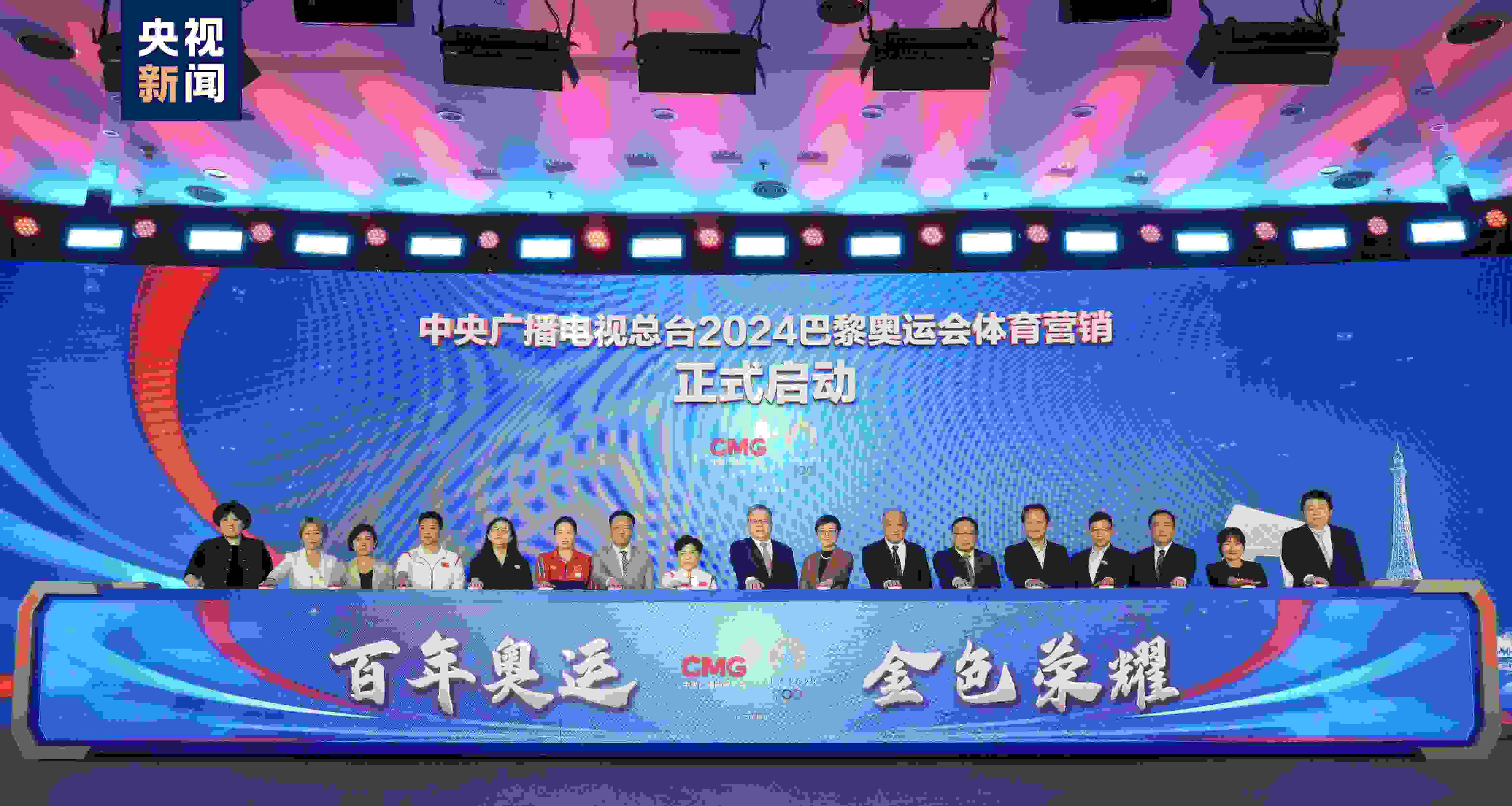 中央廣播電視總臺(tái)編務(wù)會(huì)議成員兼總經(jīng)理室總經(jīng)理彭健明出席活動(dòng),并與總臺(tái)財(cái)經(jīng)節(jié)目中心、體育青少節(jié)目中心、視聽新媒體中心、技術(shù)局、新聞新媒體中心、文藝節(jié)目中心、總經(jīng)理室相關(guān)負(fù)責(zé)人,奧運(yùn)冠軍鄧亞萍、高崚、何沖,東鵬飲料(集團(tuán))股份有限公司、寶潔(中國)有限公司、安利(中國)日用品有限公司、上海百雀羚日用化學(xué)有限公司、小紅書科技有限公司、安踏(中國)有限公司相關(guān)負(fù)責(zé)人等,共同啟動(dòng)總臺(tái)2024巴黎奧運(yùn)會(huì)體育營銷。