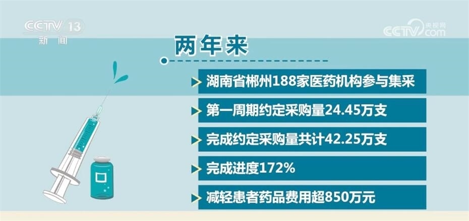 兩年來,湖南省郴州188家醫(yī)藥機(jī)構(gòu)參與集采,第一周期約定采購量24.45萬支,完成約定采購量共計(jì)42.25萬支,完成進(jìn)度172%,減輕患者藥品費(fèi)用超850萬元。