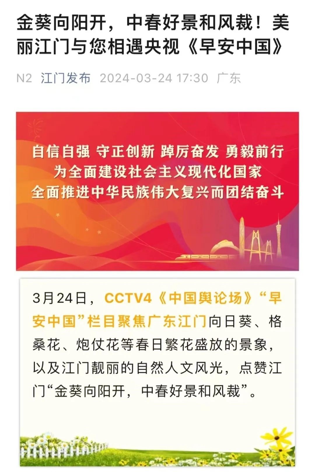 “央視帶你看綠美臺(tái)山,這次關(guān)注的是......”“就在明早7點(diǎn)!央視奉上重慶大足人文美景,向全球觀眾道早安!”“央視聚焦!徐州,有美景,有年味”“金葵向陽(yáng)開,中春好景和風(fēng)裁!美麗江門與您相遇央視《早安中國(guó)》”……越來越多的地方政府伸出橄欖枝,希望《早安中國(guó)》多“來”當(dāng)?shù)匾挥[好風(fēng)光。