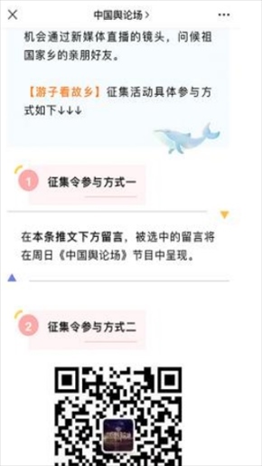 “早安中國(guó)切口新穎,有文化屬性和微記錄的氣質(zhì)?!薄懊看纹驳慕Y(jié)語(yǔ)字幕,都是從哪里選的?每天,都給我學(xué)習(xí)的機(jī)會(huì)?!薄皩I(yè)微記錄是媒體融合最寬廣的路?!薄对绨仓袊?guó)》真真切切地緩解了許多海內(nèi)外網(wǎng)友的故土思鄉(xiāng)情切,也收到了來自四面八方的認(rèn)可及反饋?!吨袊?guó)輿論場(chǎng)》節(jié)目持續(xù)發(fā)出“游子看故鄉(xiāng)”征集令,請(qǐng)海外華僑華人說出對(duì)家鄉(xiāng)的思念和心中最想“打卡”的祖國(guó)美景。