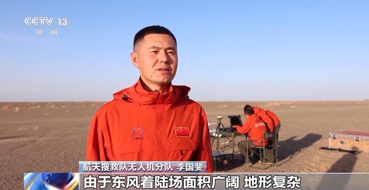 航天搜救隊(duì)無人機(jī)分隊(duì) 李國斐:由于東風(fēng)著陸場面積廣闊,地形復(fù)雜,單靠人力無法實(shí)現(xiàn)掌握整個(gè)著陸場的動(dòng)態(tài)情況,使用無人機(jī)就能彌補(bǔ)我們看不到的盲區(qū),通過搭載的不同載荷,比如高清攝像頭和熱成像設(shè)備,來滿足不同的搜救需求,大大提高了搜救的靈活性和多樣性。