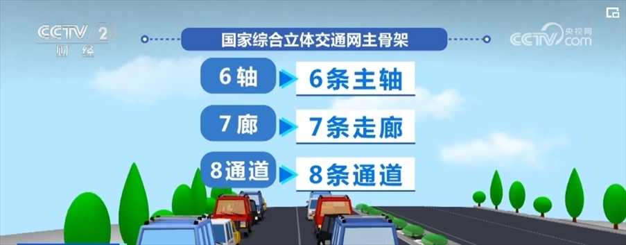 國(guó)家綜合立體交通網(wǎng)主骨架可以概括為“6軸、7廊、8通道”,即6條主軸、7條走廊、8條通道。