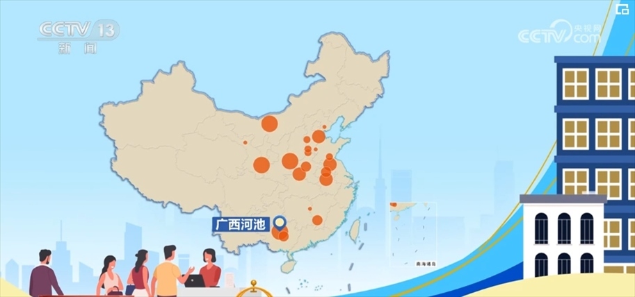 大家都去哪兒了?通過分析平臺(tái)上335個(gè)目的地的同比增幅數(shù)據(jù)后,找到了2024年“五一”最受歡迎的小眾旅游目的地。在這張熱力圖上,標(biāo)注的是增幅前20的小眾目的地城市,圓圈大小表示增幅的高低,排名第一的廣西河池的酒店和票務(wù)預(yù)訂同比增長(zhǎng)近四倍,而分布在10個(gè)不同省份的這20個(gè)城市,同比增幅都在一倍以上。