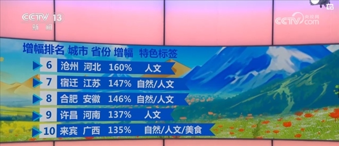 二三線旅游市場(chǎng)快速崛起,不僅在“五一”假期凸顯出來,在清明假期就已經(jīng)顯現(xiàn)出端倪。綜合出游平臺(tái)數(shù)據(jù)顯示,當(dāng)時(shí),西部地區(qū)的向?qū)в唵瘟空伎傆唵瘟?1%。甘肅天水、新疆那拉提草原等熱度飆升較快。